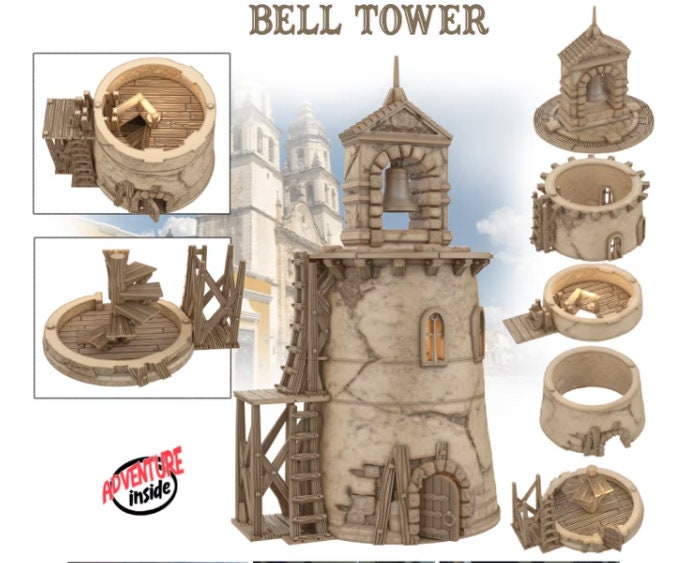 Incredibly detailed bell tower for your tabletop scenery, which were created by the amazing Iain Lovecraft and were acquired via Kickstarter https://www.kickstarter.com/projects/iain-lovecraft/treasure-island-1/description