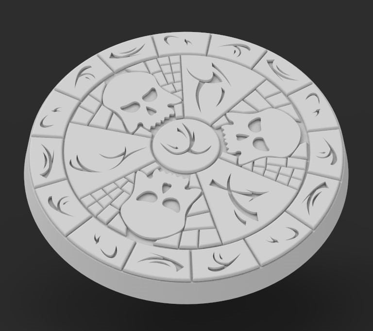 Exceptional detailed Dark Elves themed bases, which were created by the amazing artist Casper Gad and were acquired via kickstarter (https://www.kickstarter.com/projects/basicaiddesign/more-than-100-designs-to-base-your-miniatures).
