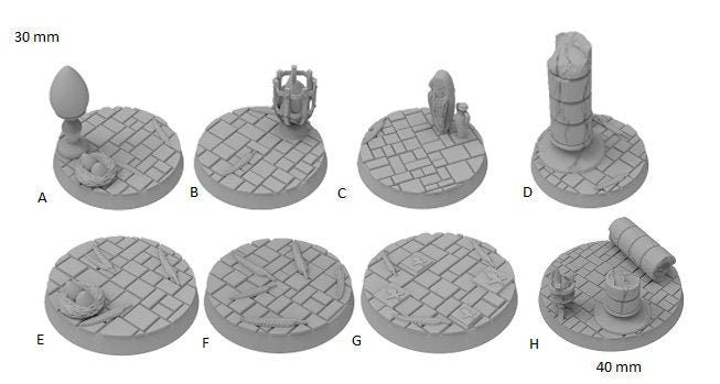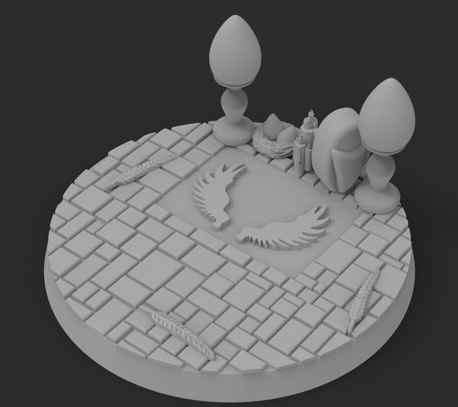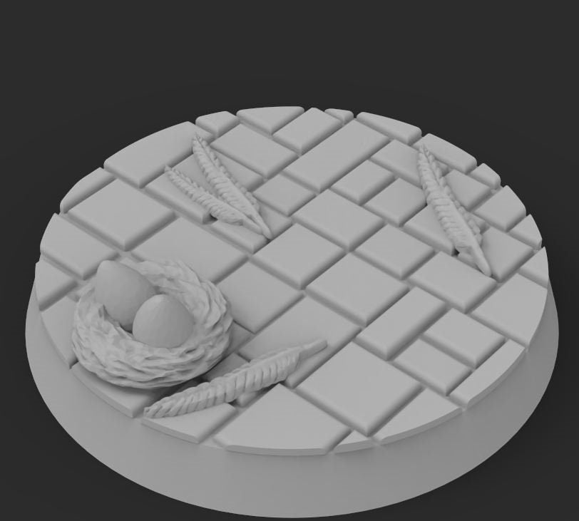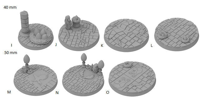 Exceptionally detailed Dragonborn themed bases, which were created by the amazing artist Casper Gad and were acquired via kickstarter (https://www.kickstarter.com/projects/basicaiddesign/more-than-100-designs-to-base-your-miniatures).