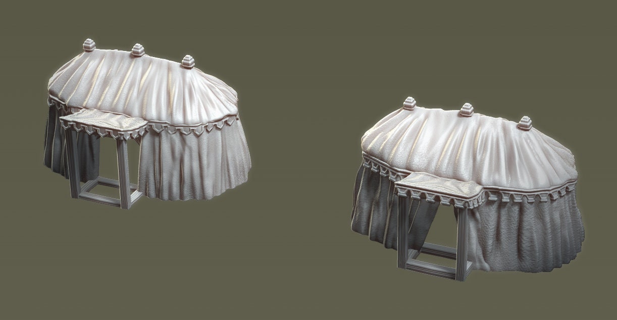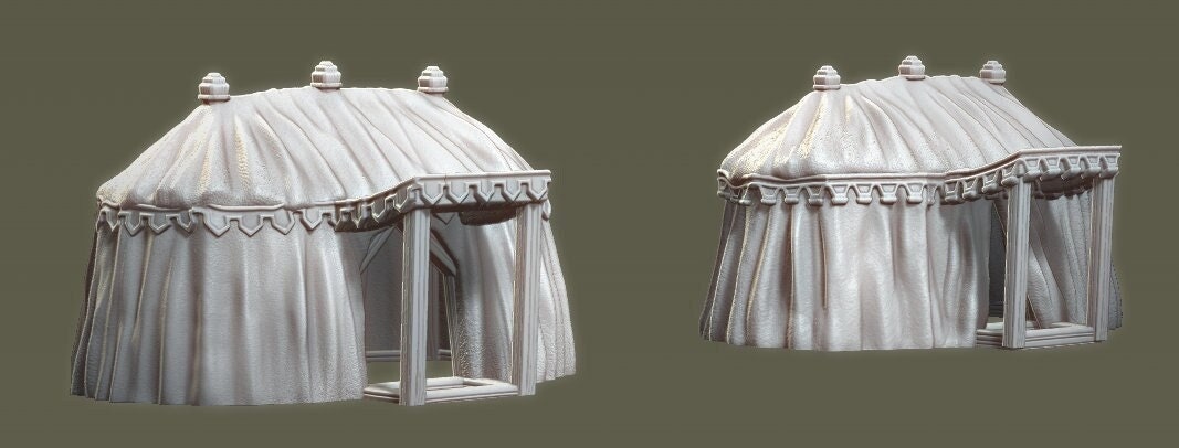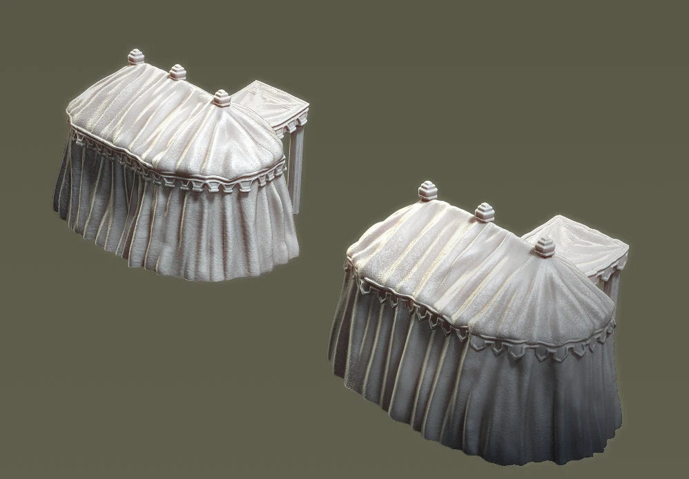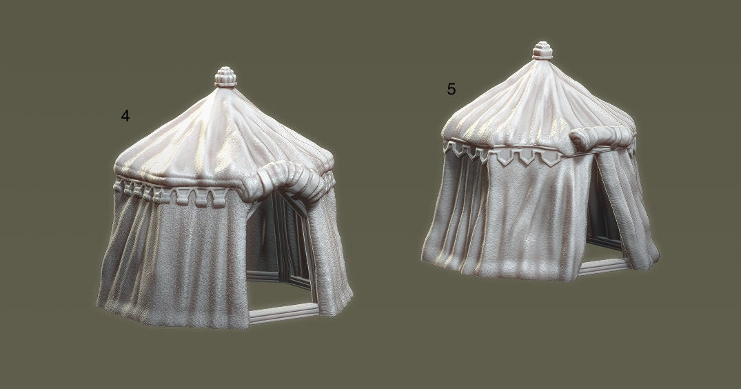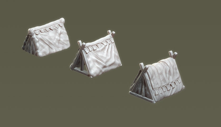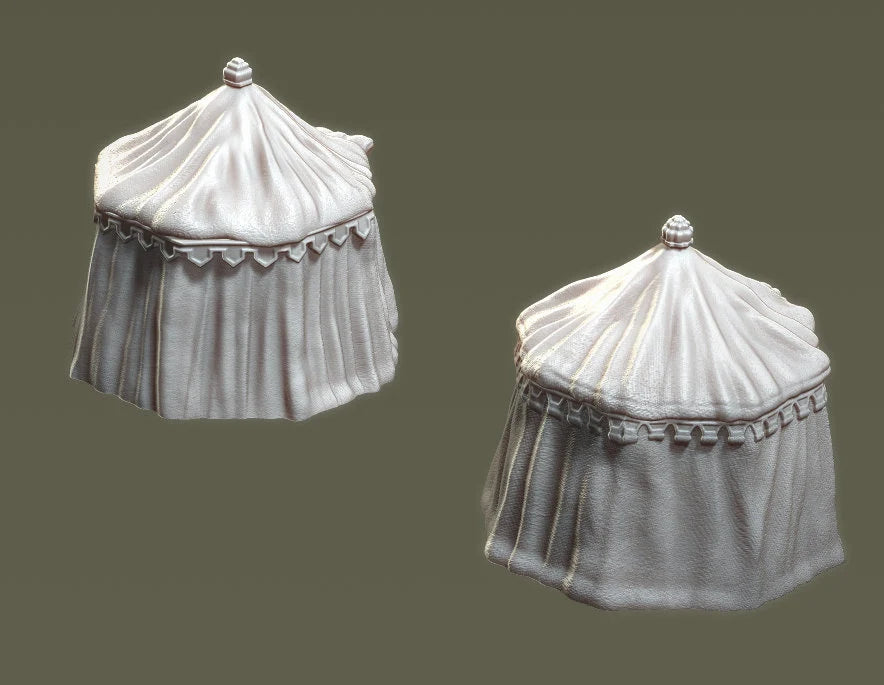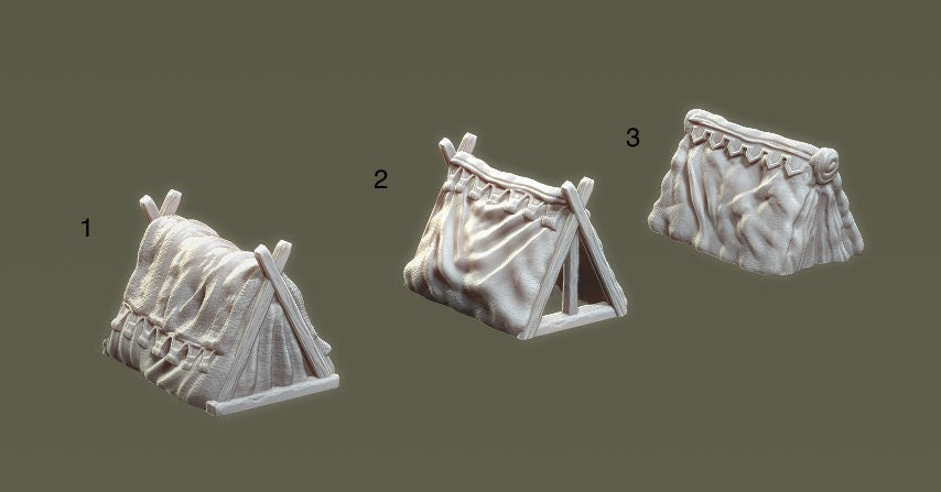 Exceptionally detailed military tents for your D&D encounters or as a tabletop scenery, which were created by Youngho Son and were acquired via the kickstarter project