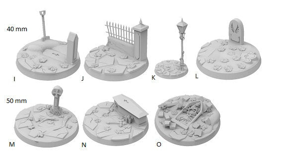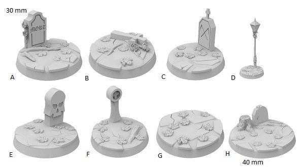 Exceptional detailed Graveyard themed bases, which were created by the amazing artist Casper Gad and were acquired via kickstarter (https://www.kickstarter.com/projects/basicaiddesign/more-than-100-designs-to-base-your-miniatures).