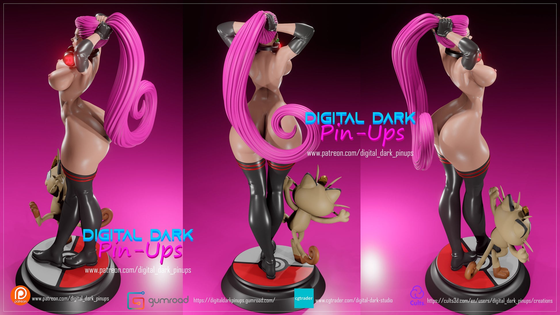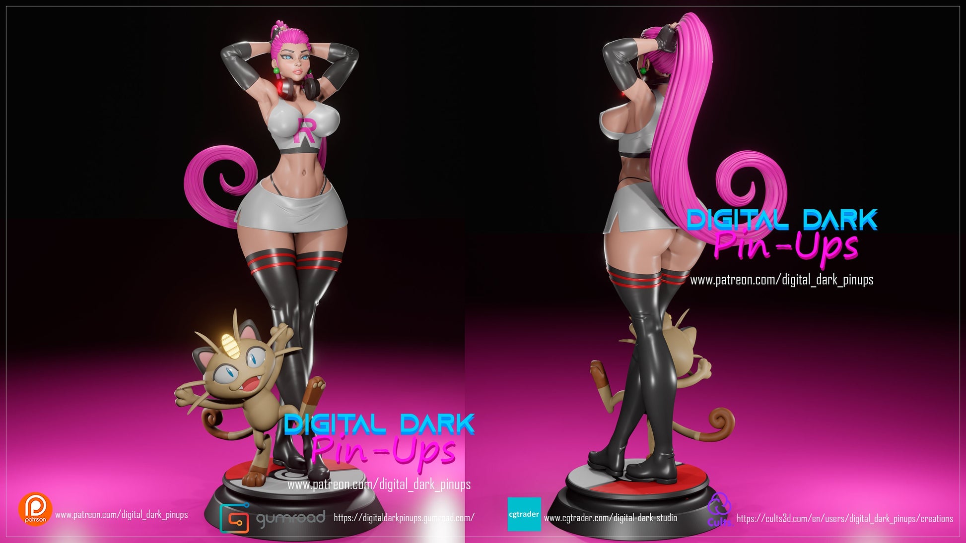 Exceptionally detailed pin up Jessie with various outfits for your dnd encounters as well as a tabletop scenery or even a collector's piece, which were created by Created by "digital dark pin up" and were acquired via patreon, with the merchant ability to sell physical products of their designs